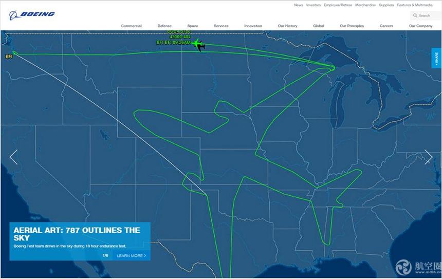 跨越22州 歷時18小時 波音787在美國上空畫了張“自畫像”