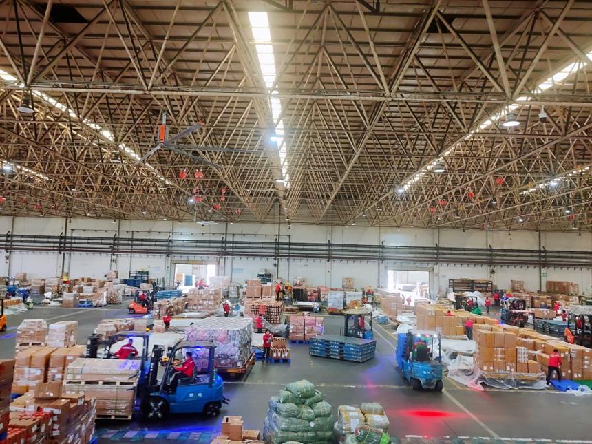 繁忙的廣州白云機(jī)場空港口岸跨境電商出口區(qū)
