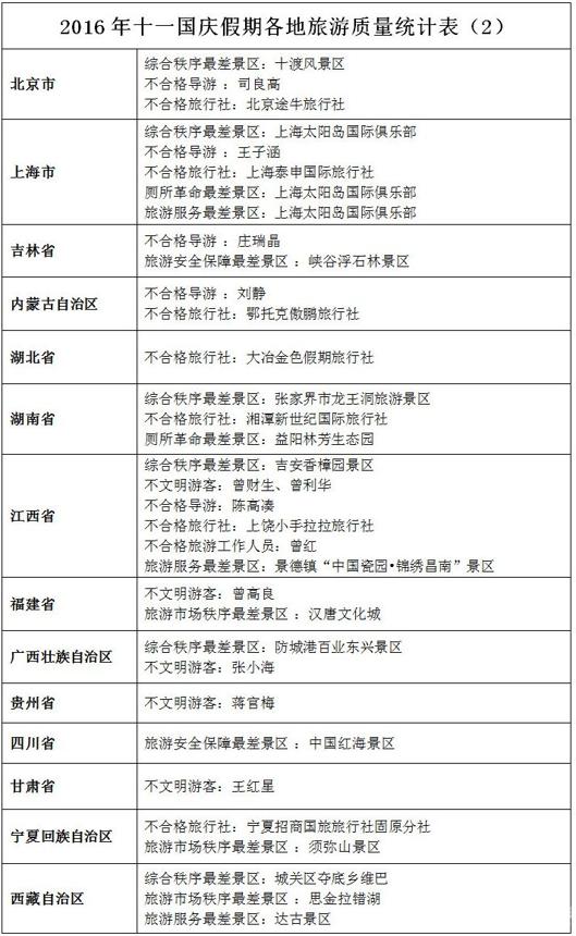 國(guó)家旅游局發(fā)布十一假日旅游“紅黑榜”