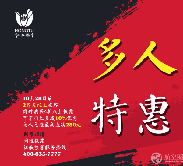 十一黃金周將至 紅土航空推出“多人特惠”和”購票有禮