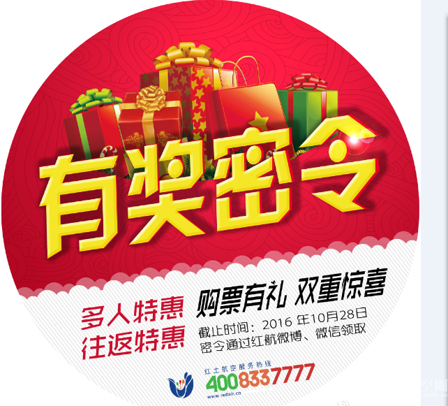 此外,紅航還針對購買“多人特惠”、“往返特惠”產品的旅客,推出“有獎密令”購票有禮活動,即日起至10月28日
