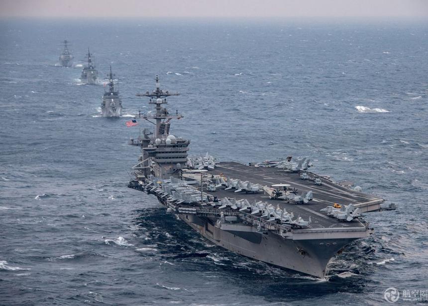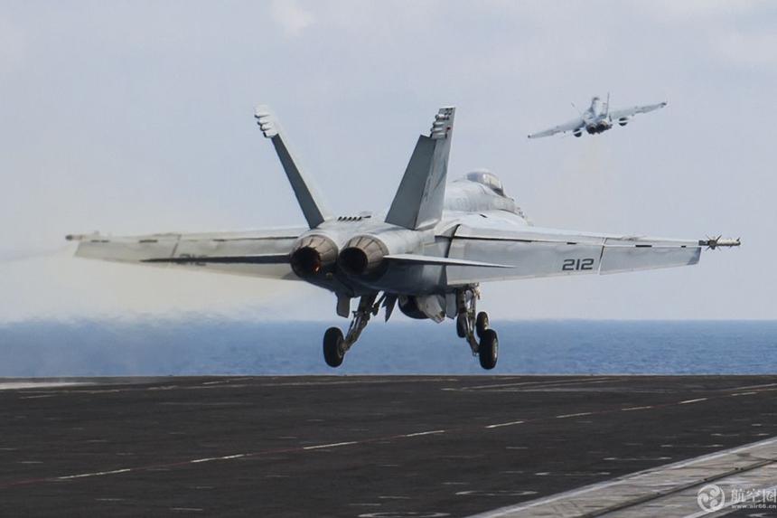 美國卡爾·文森號航母上一架F-18大黃蜂戰機墜毀