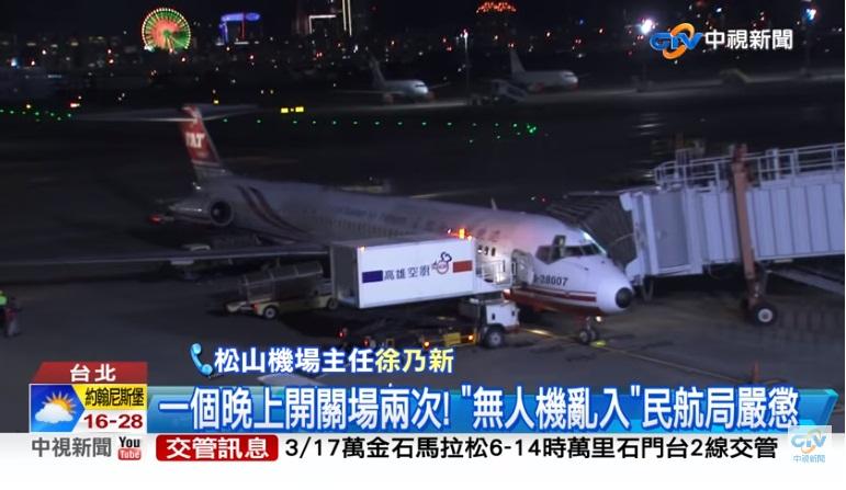 無人機兩次闖入臺北松山機場 機場兩次關閉 將罰款150萬