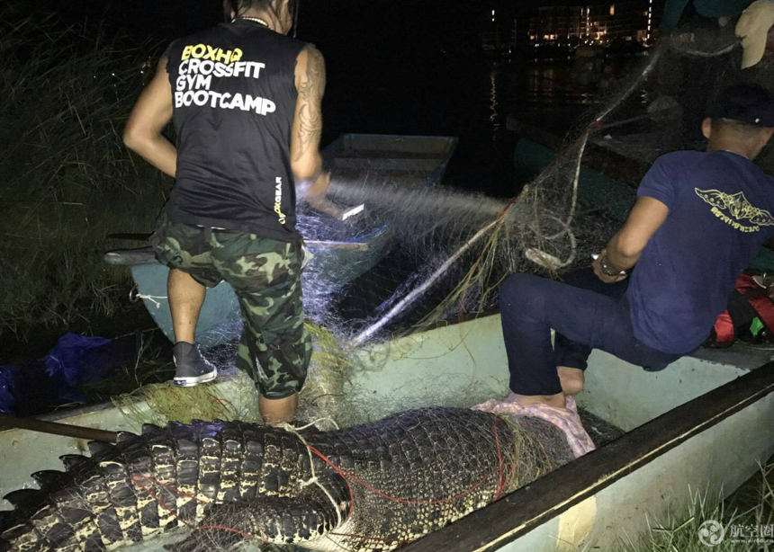 當地時間9月1日凌晨3時30分(北京時間4時30分)左右,他們捉住了試圖游回海中的鱷魚。